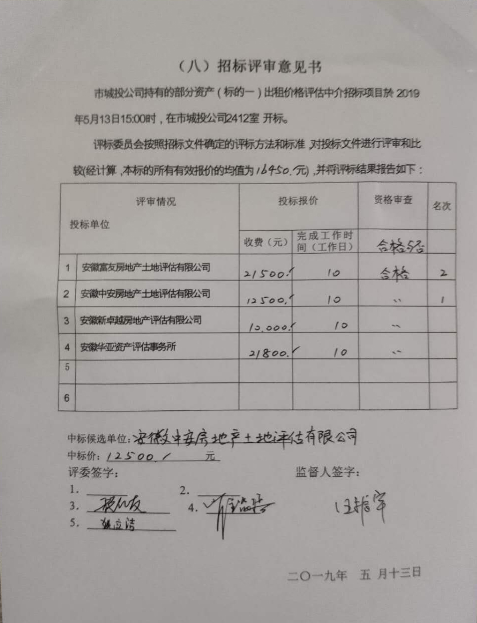 市城投公司持有的部分資產(標的一)出租價格評估中介招標項目結果公示