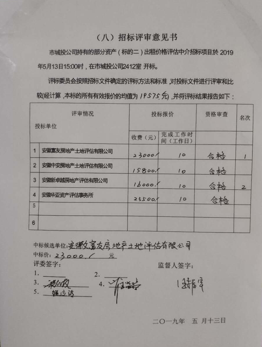市城投公司持有的部分資產(標的二)出租價格評估中介招標項目結果公示