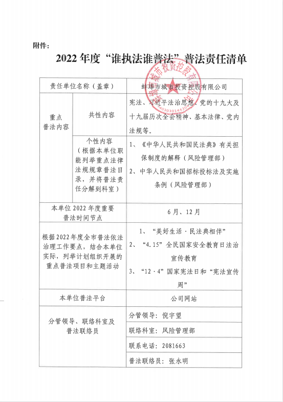 市城投公司“誰執法誰普法”責任清單