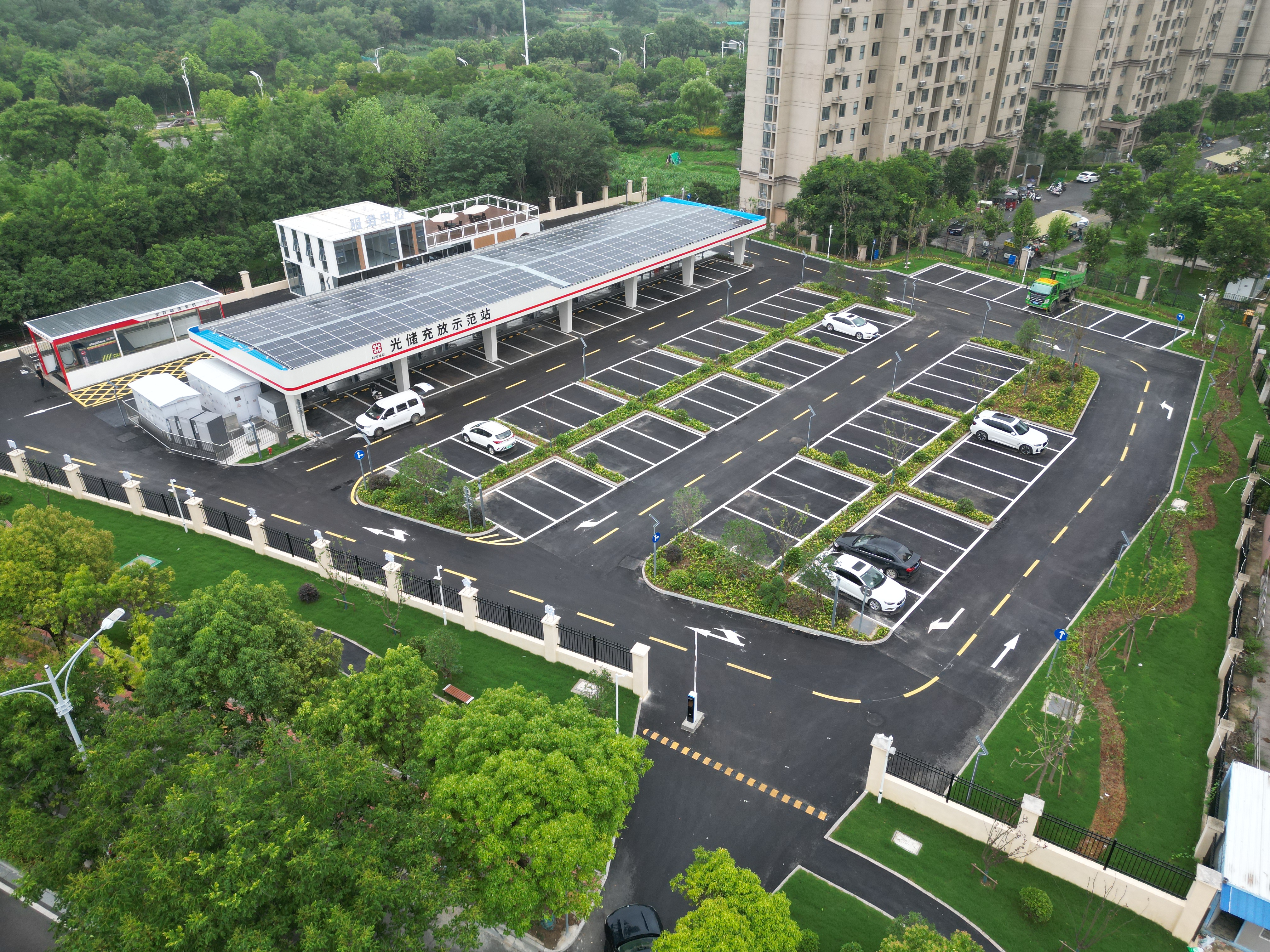 今年以來,蚌埠城投公司積極響應市委、市政府號召,持續聚焦新能源汽車后市場服務,將場站建設與“拆墻透綠”“口袋公園”專項行動相結合,首批投資4000萬元建設3處高綠植覆蓋生態“光儲充放”綜合能源示范站。目前,陶店、鳳陽東路綜合能源示范站已于7月正式運營,小新莊綜合能源站已正式啟動建設。