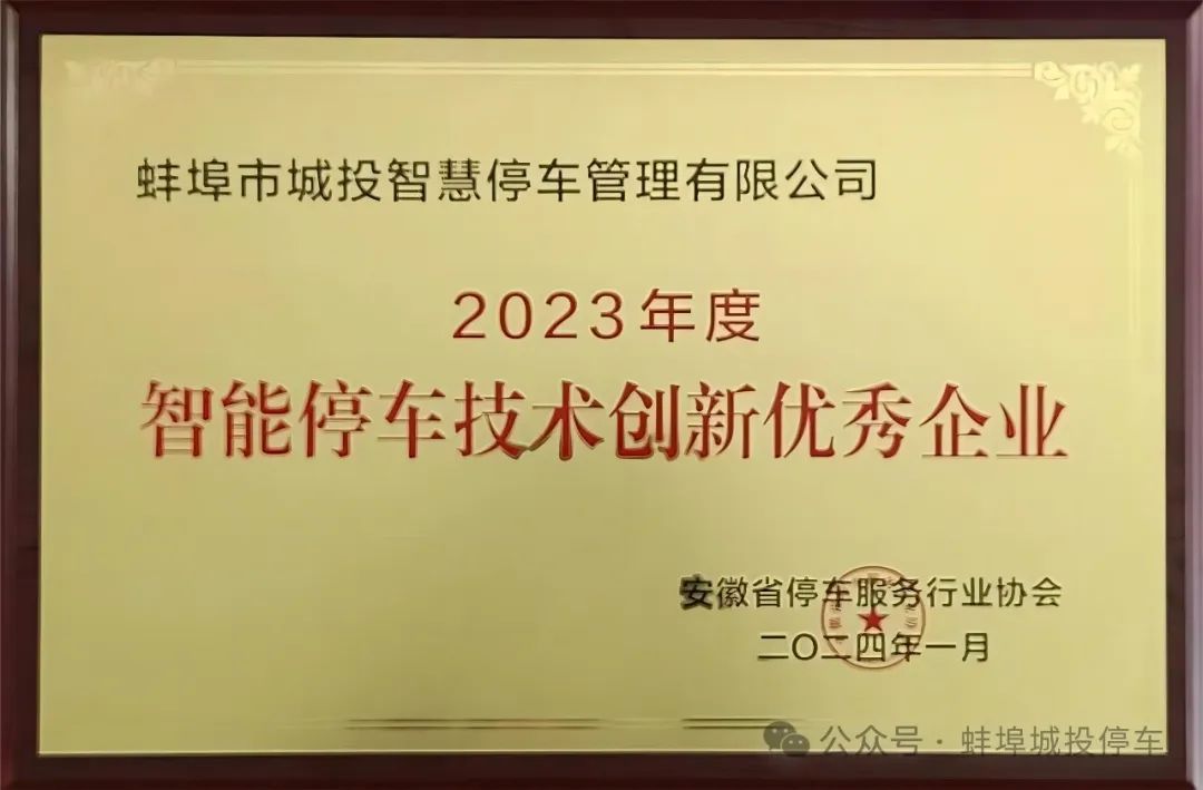 市城投停車公司榮獲“2023年度智能停車技術創新優秀企業”稱號