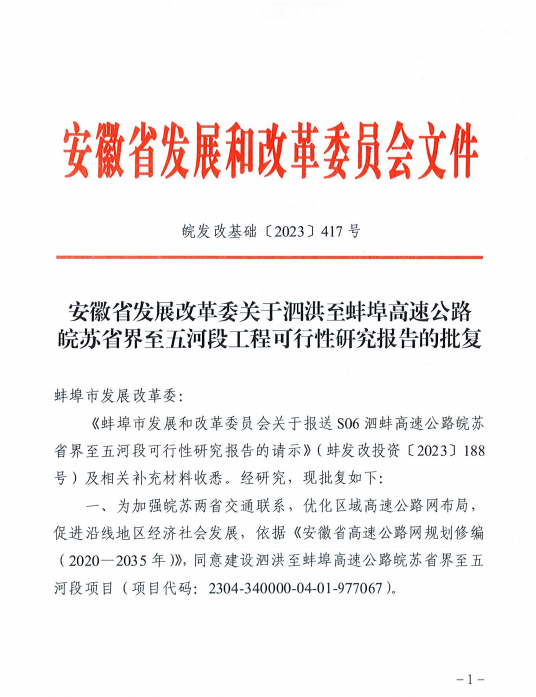 2023年8月24日,S06泗蚌高速公路皖蘇省界至五河段項目工程可行性研究報告獲省發改委批復,標志著泗蚌高速公路建設取得實質性突破。 S06泗蚌高速公路皖蘇省界至五河段項目是皖北地區高速路網的重要組成部分。該項目的建設是串聯蚌埠市外圍重要城鎮、加快蚌埠市“一帶兩軸...